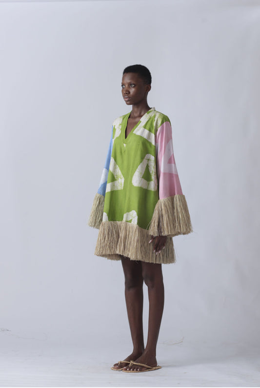 EKI KERE Green Multicolor Raffia Doll Mini Dress