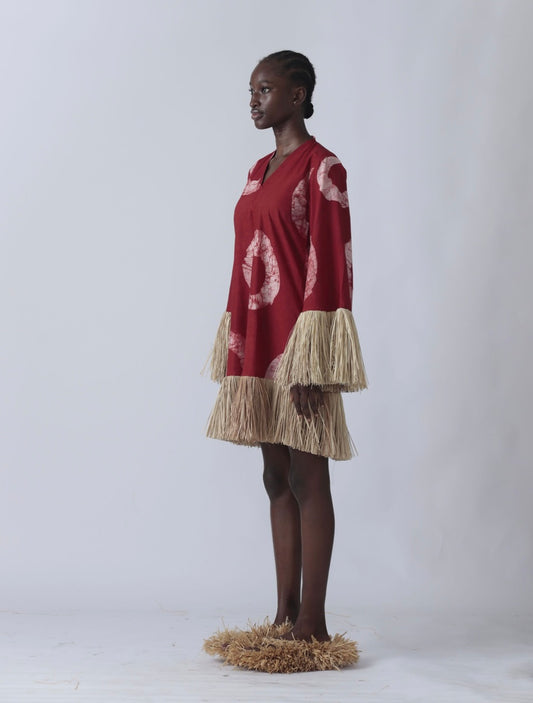 EKI KERE Red with Red Raffia Doll Mini Dress