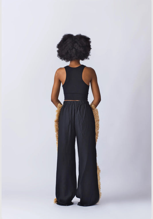 EKI KERE Raffia Trim Linen Pants