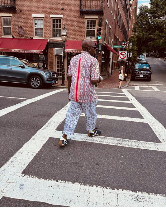OBIDA 69 Cream and Navy with Embroidery Short Sleeve Shirt