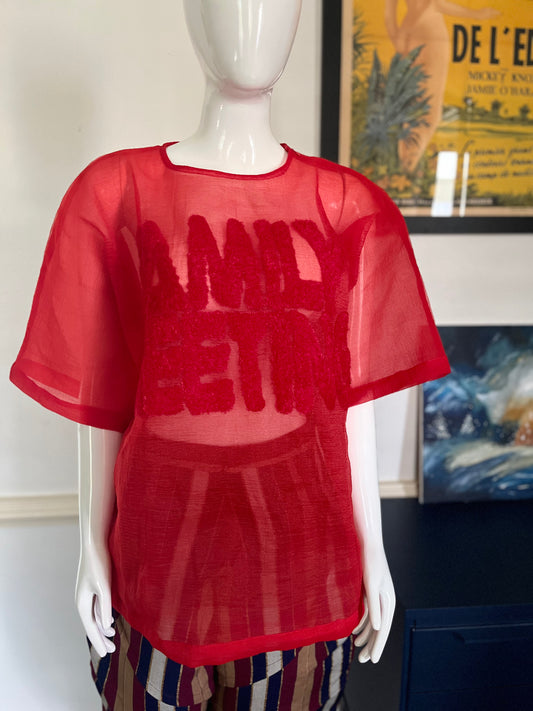 ITUEN BASI Red Family Meeting Organza top with embroidery