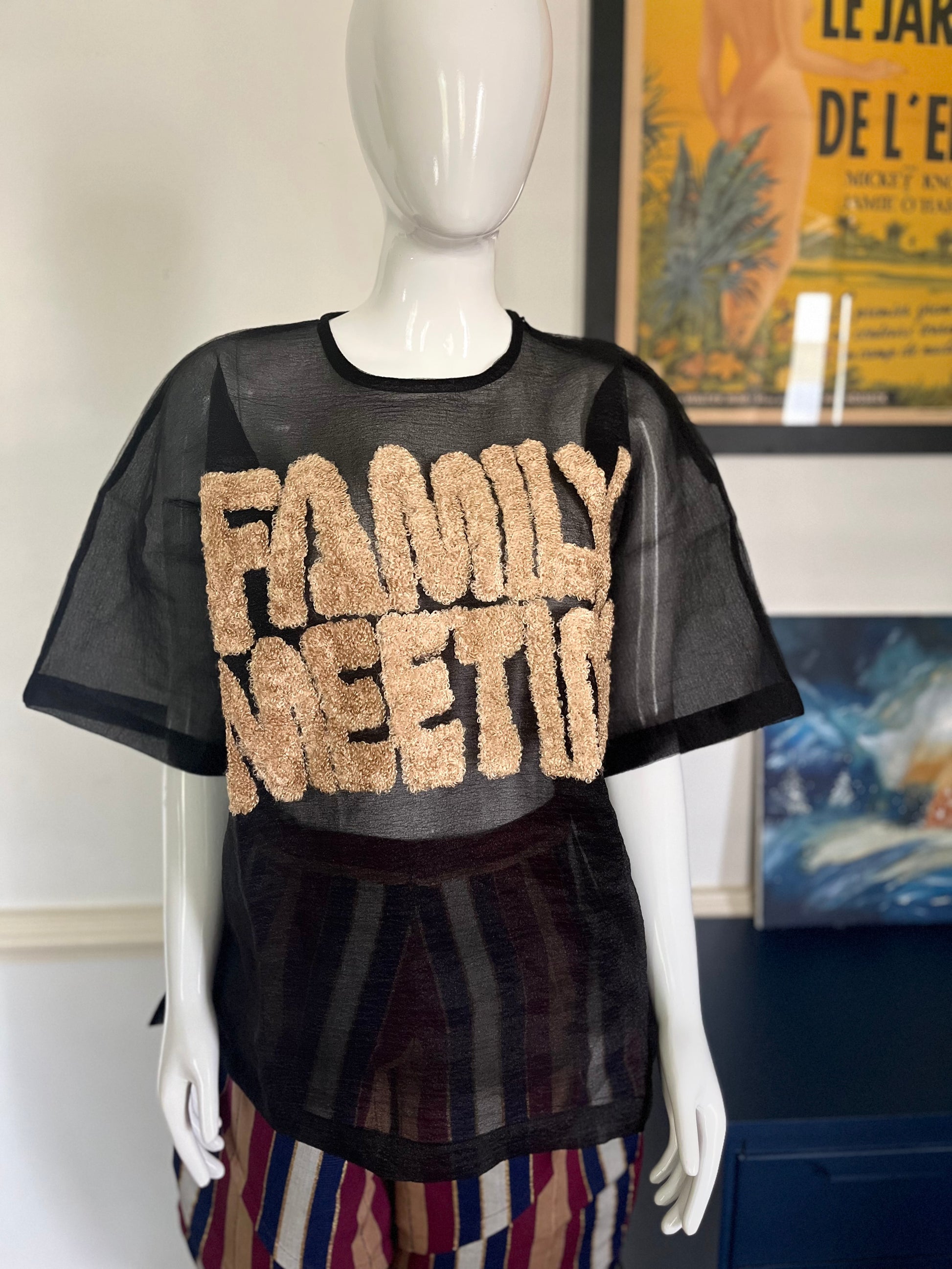 ITUEN BASI Black Family Meeting Organza top with embroidery
