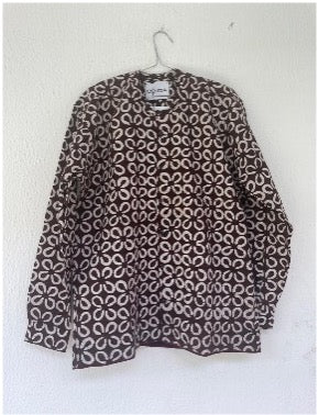 OBIDA Saro Dark Brown and White with Embroidery Long Sleeve Shirt
