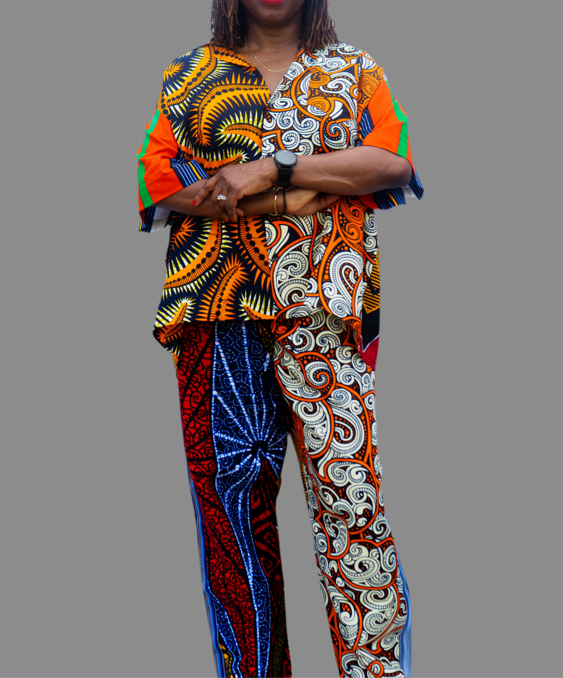 TZAR STUDIO African Print Ankara Pant Suit – Orange Two-Piece Set for Women